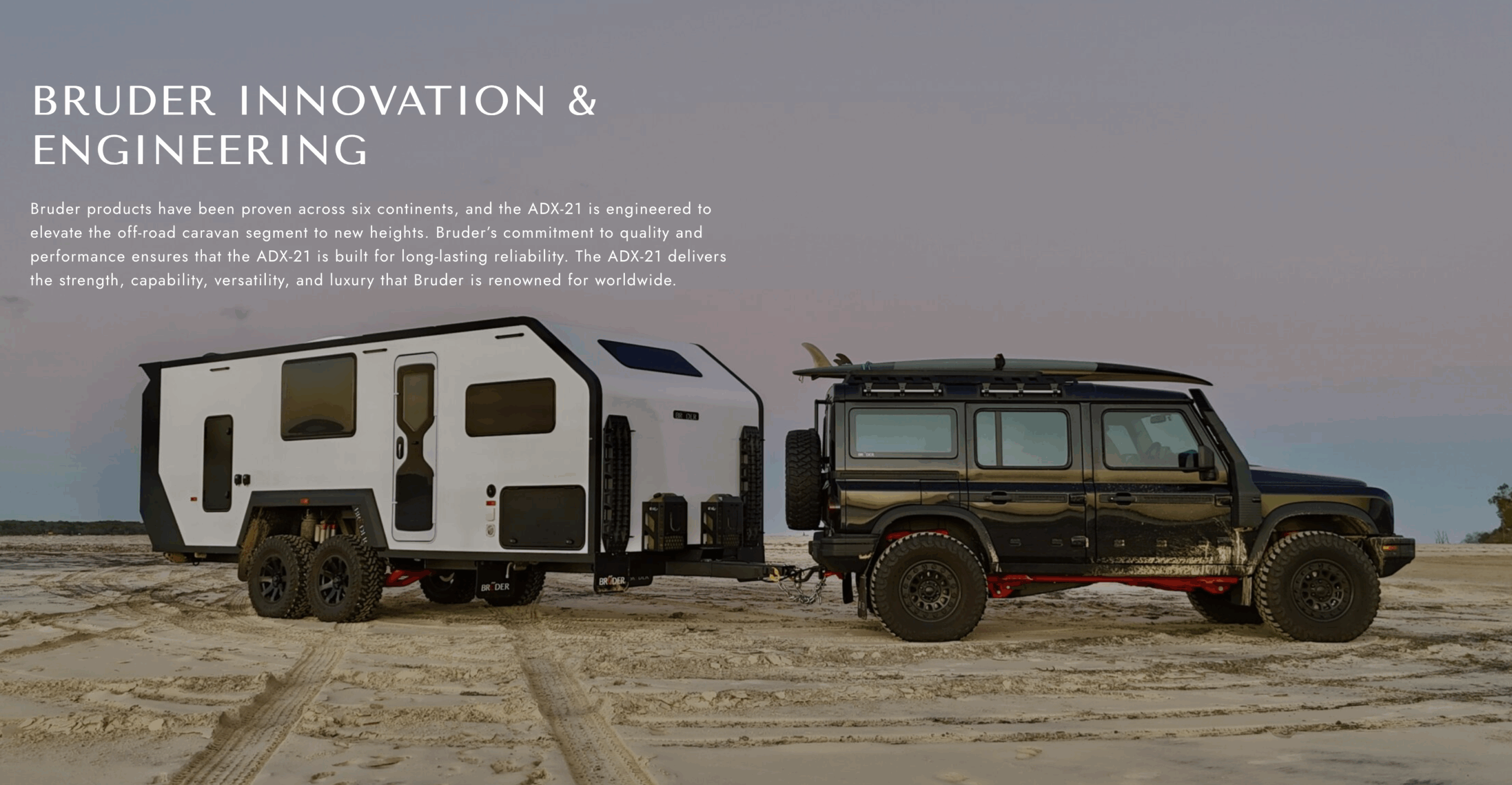 Mit modernster Innovation und den weltweit patentierten Technologien von Bruder wird der ADX-21 das Segment der Offroad-Wohnwagen in Originalgröße neu definieren.